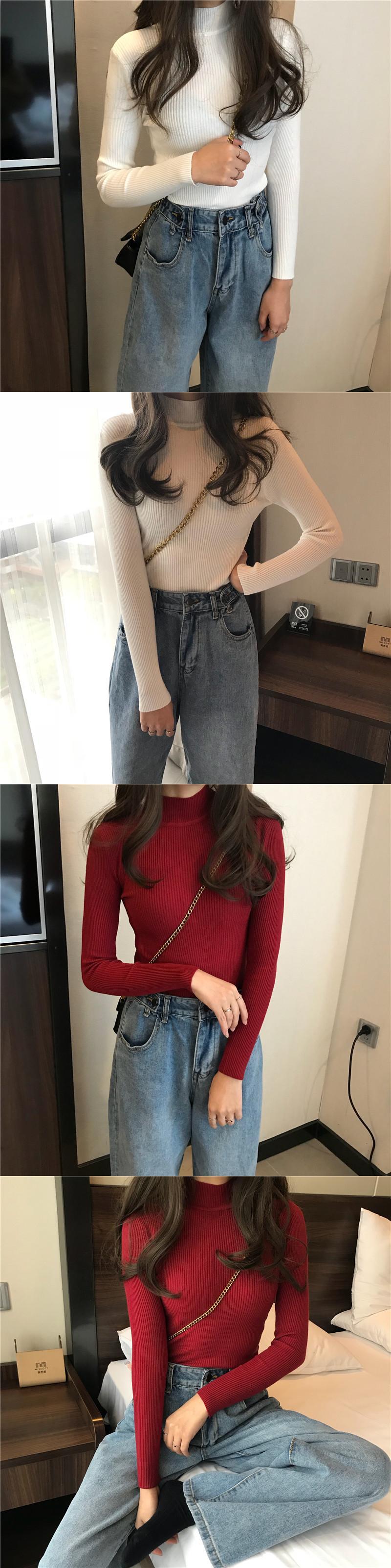 薄手ブラックニットセーター トップス レディーススタイルオータムウィンタースリムシャツ ロング 秋物 冬物 kumikum80482921544