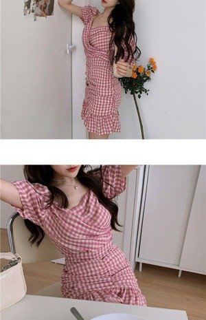スタイル格子柄スリーブスリムトップス サマーハイウェストウェストショートスカート 夏物 kumikum82404855276