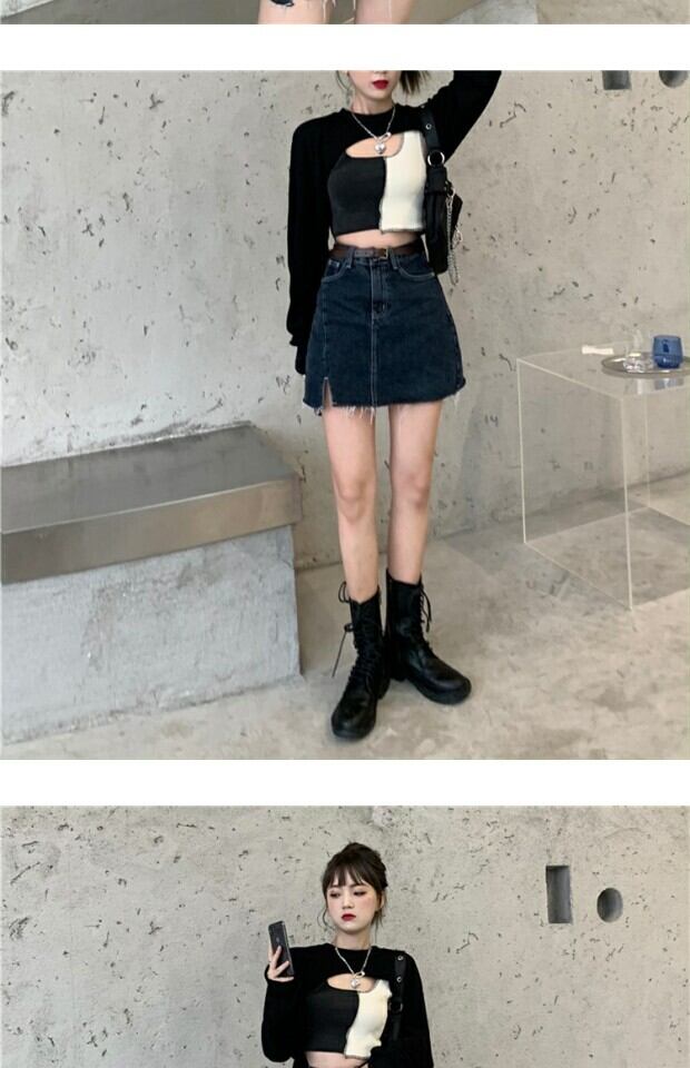色:黒いセーター,コントラストベスト
