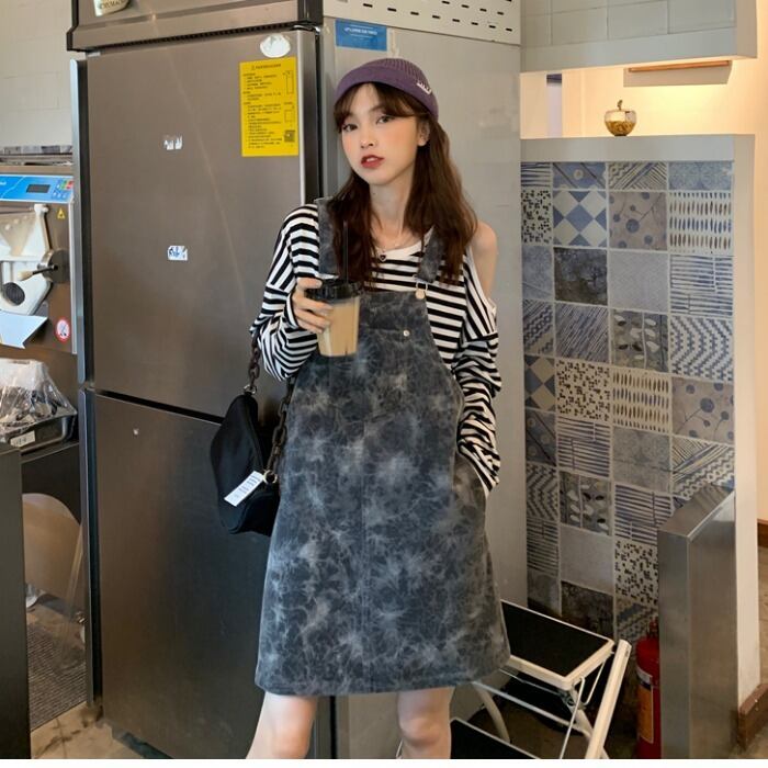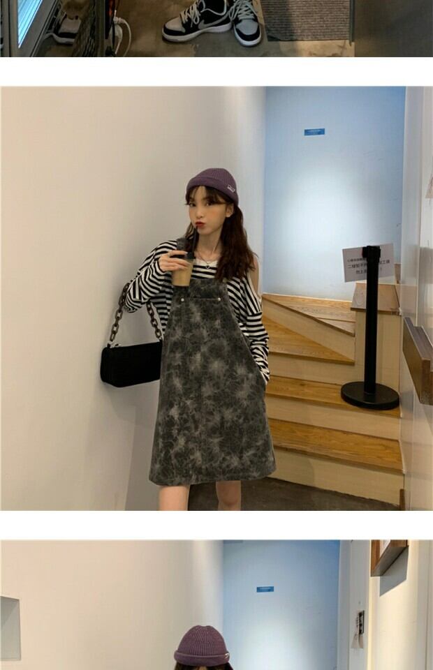 スプリングルーズストラップレスストライプTシャツ コーデュロイスカート 春物 kumikum15340214196
