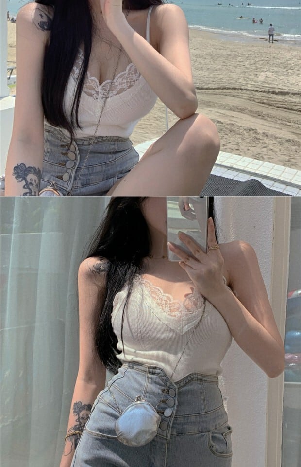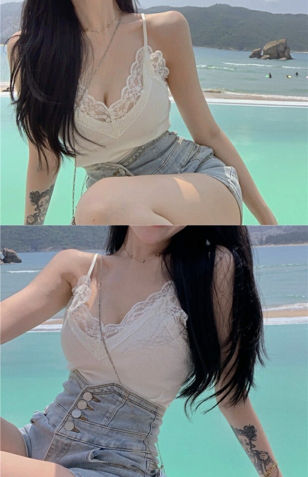 レッドレースサイドシャツ サマースリムショート 夏物 kumikum46884527212