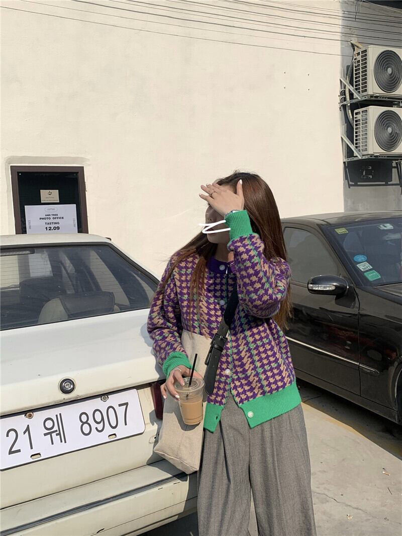 スタンダードカラーラウンドネックセーター カーディガンジャケット スプリングルーズ ロング レトロ 春物 Oネック kumikum58951498741