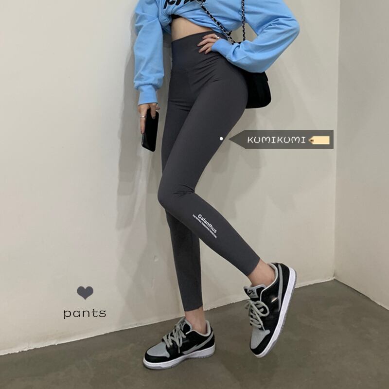 グレーカジュアルパンツ ロングスプリングストレッチハイウェスト エラスティック 伸縮 春物 kumikum18216111117