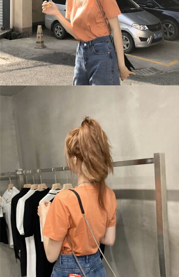ベーシックソリッド カラースリムシャツ トップス サマーラウンドネック半袖スリーブ ショート ハーフスリーブ 夏物 Oネック ソリッドカラー kumikum47594178601