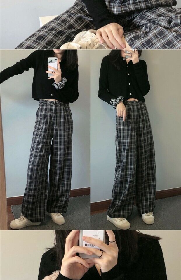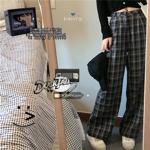 スタンダード格子柄ハイウェストパンツ スプリングルーズ薄手カジュアル レトロ 春物 kumikum55554188624