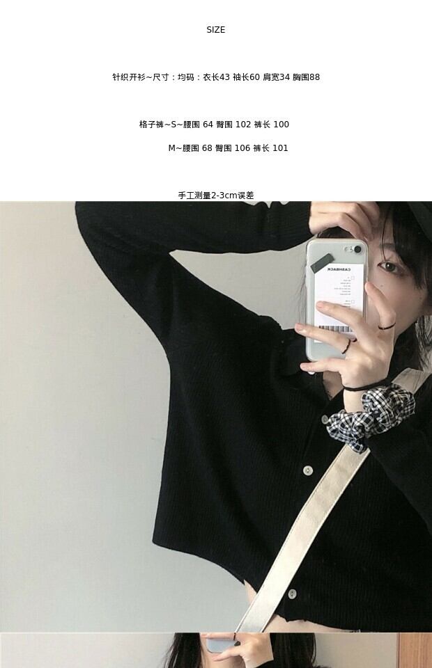 色:カーディガン,チェック柄パンツ