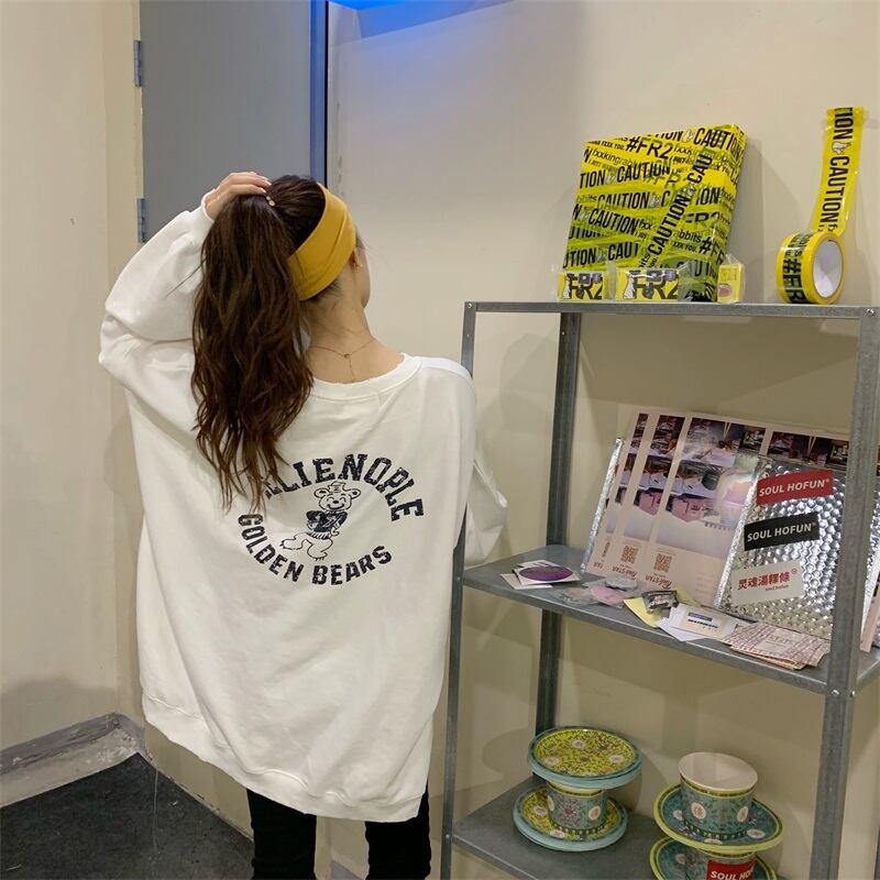 ルーズプリントセーター スプリングプルオーバー トップス ロング 春物 kumikum91647566897