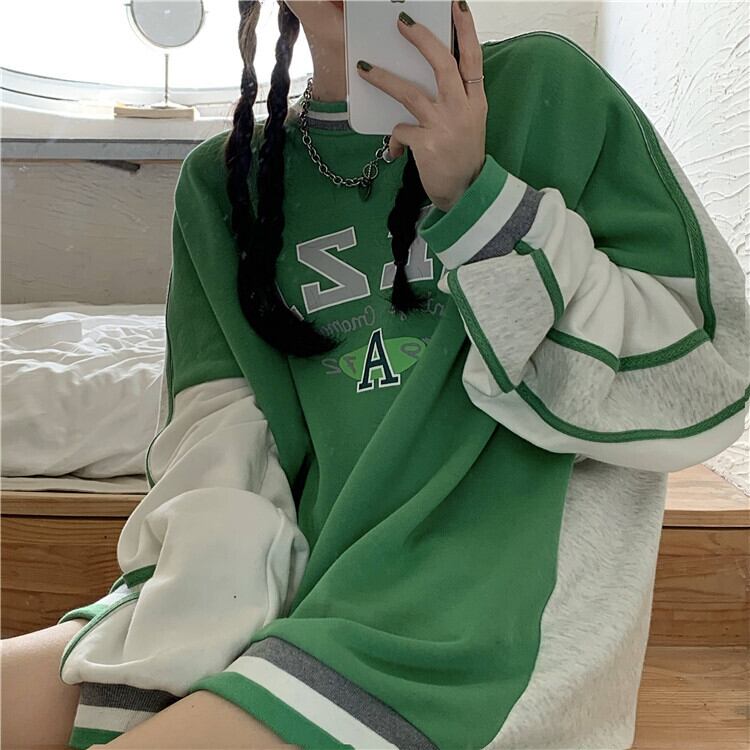カラープリントラウンドネックセーター コート スプリングルーズシャツ ロング 春物 Oネック kumikum82840002283