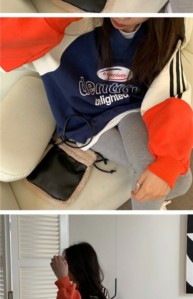 プリントラウンドネックセーター ジャケット スプリングカラールーズプルオーバー トップス ロング 春物 Oネック ステッチ kumikum21678466202