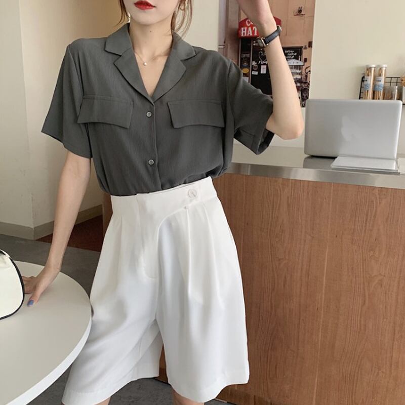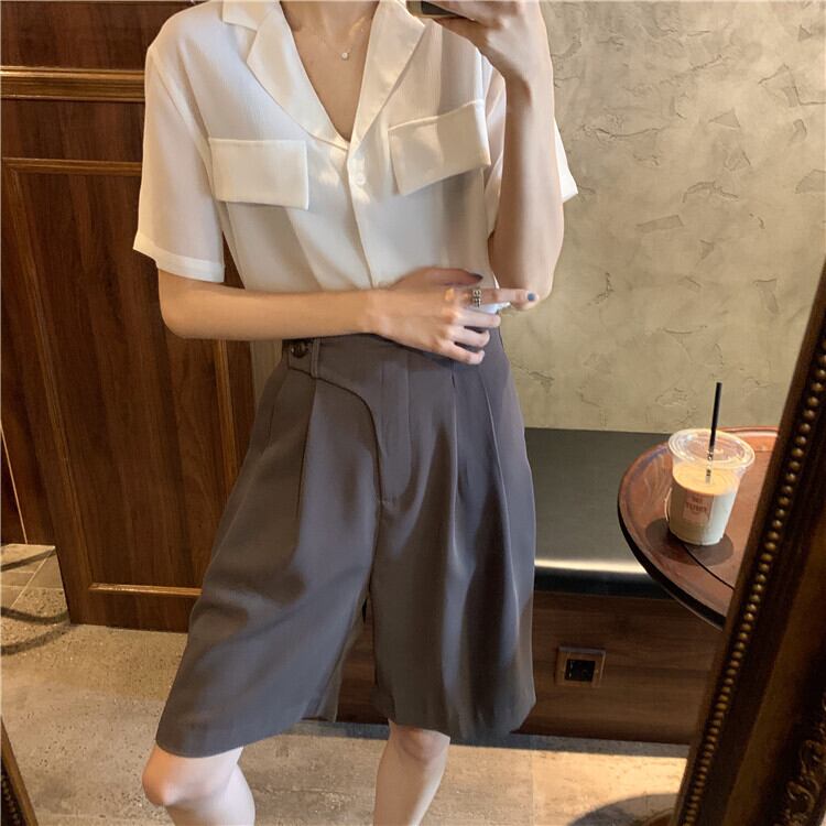 ホワイトシャツ スプリングハイウェストウェストスリムカジュアルショーツ 春物 ブルマー kumikum38957122611