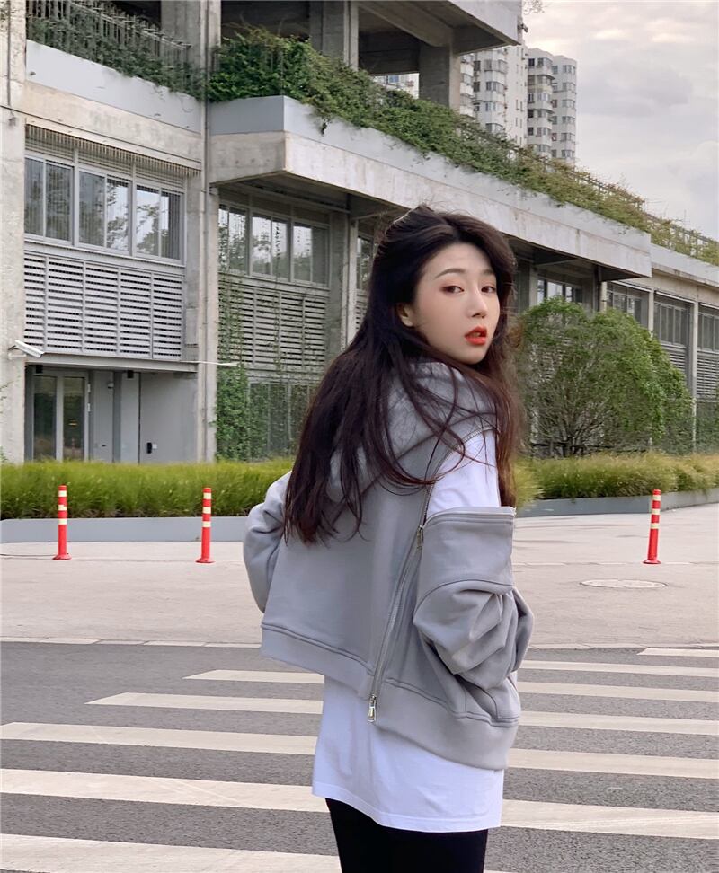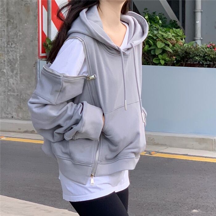 色:グレーのジッパースウェットシャツ
