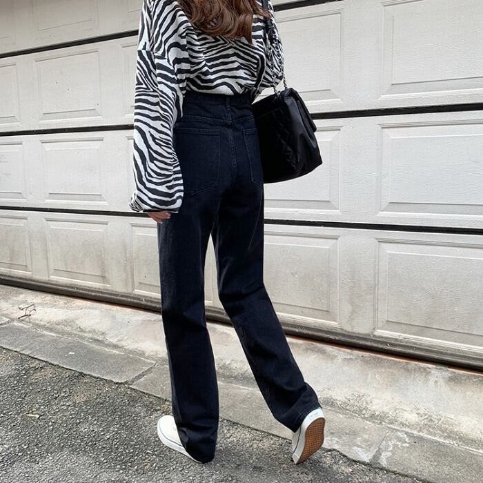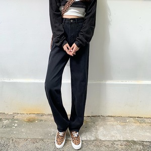 スプリングハイウェストウェストスリムパンツ ルーズブラックジーンズ 春物 kumikum43680139704