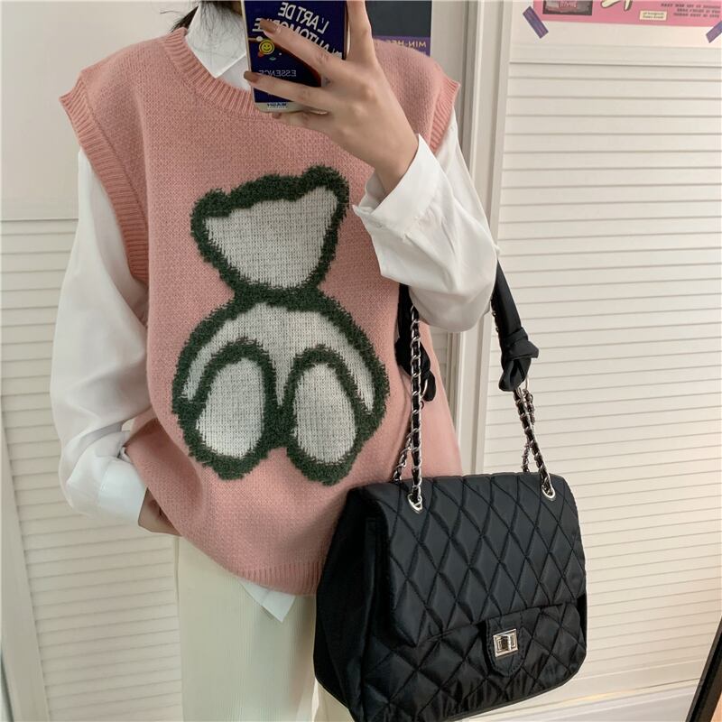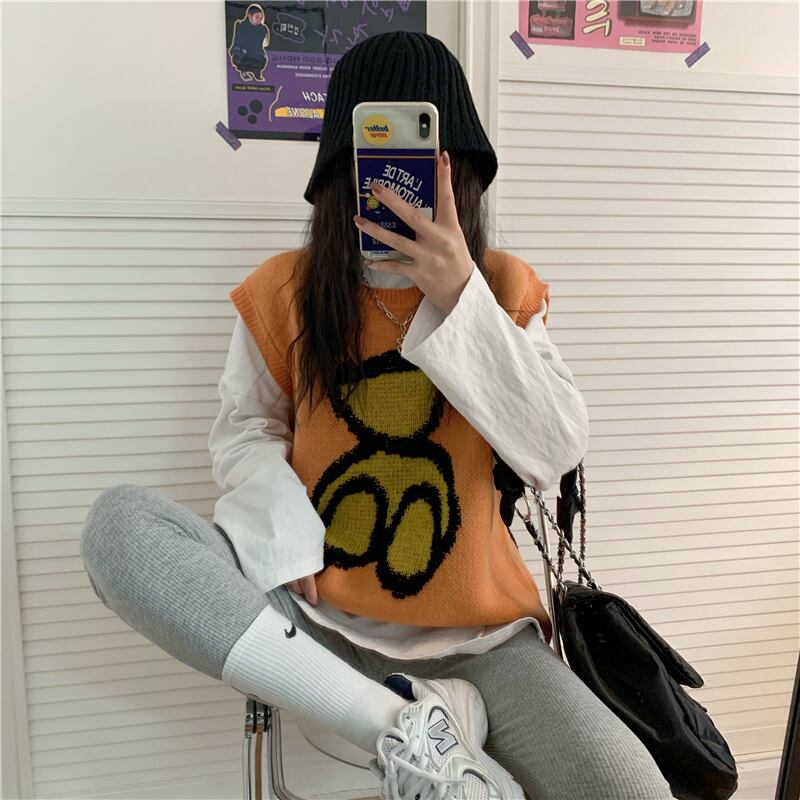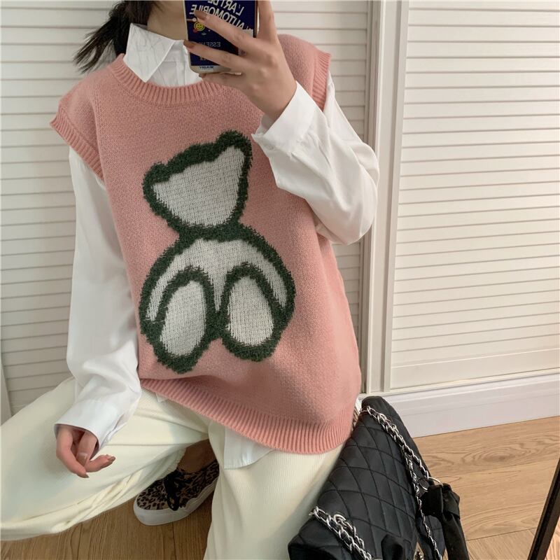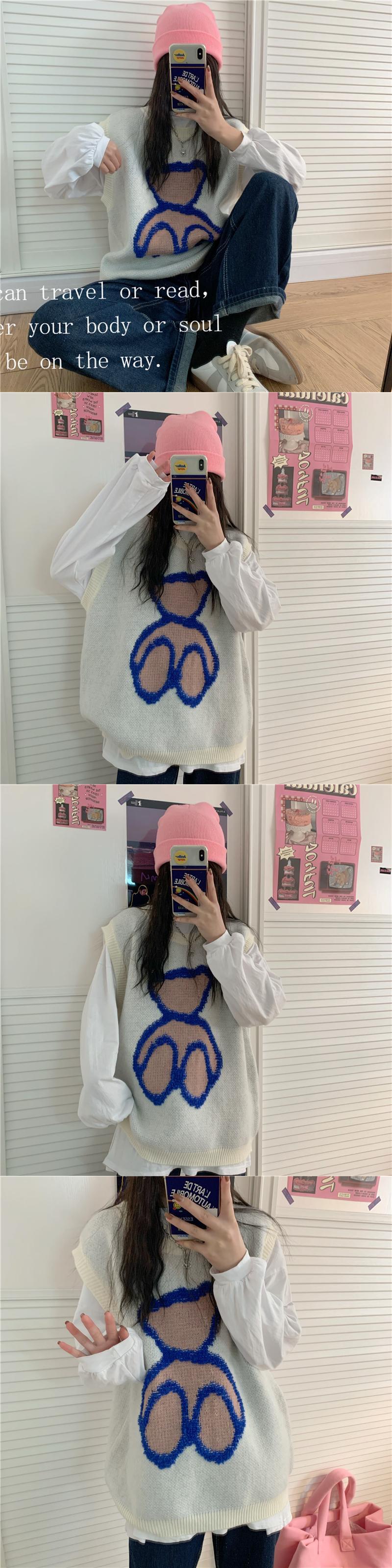 スプリング刺繍ルーズノースリーブニット 春物 kumikum98795369433