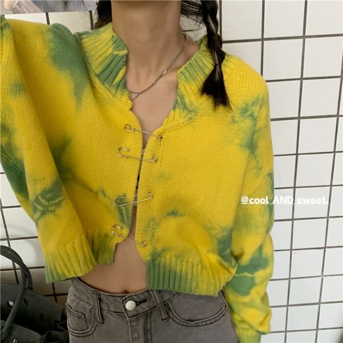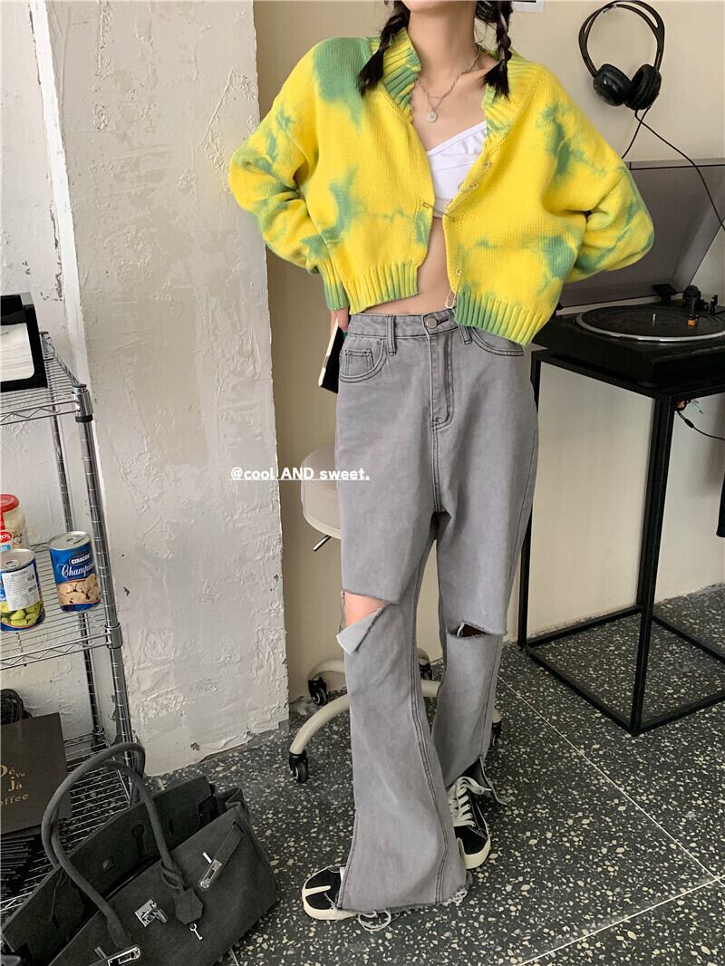 ショートニットセーター トップス スプリングルーズ ロング 春物 kumikum37048080722
