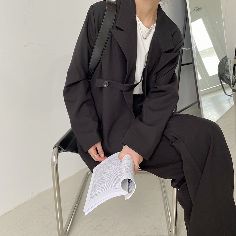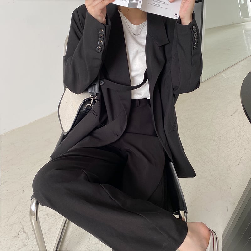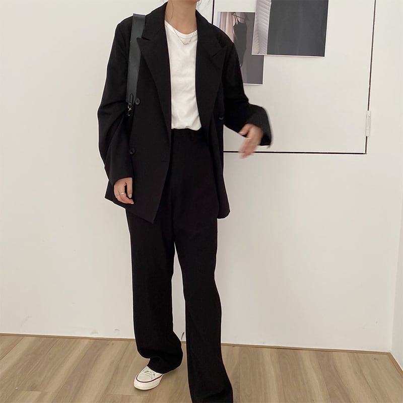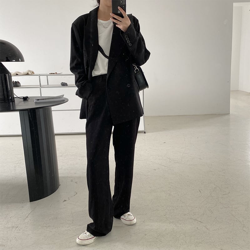 スプリングブラックジャケット ハイウェストパンツ ロング 春物 kumikum78293300801