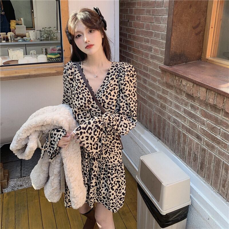 ジャケット ウィンターレオパードプリント柄Aラインドレス ロング 冬物 kumikum95695828294