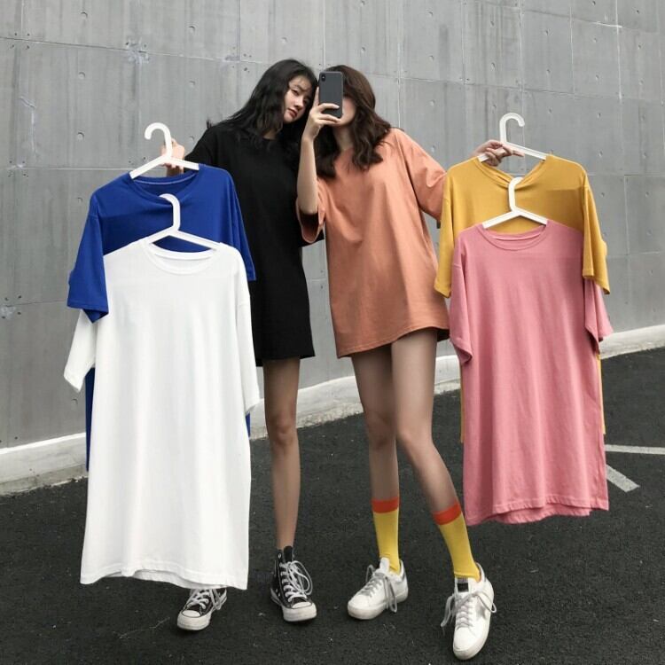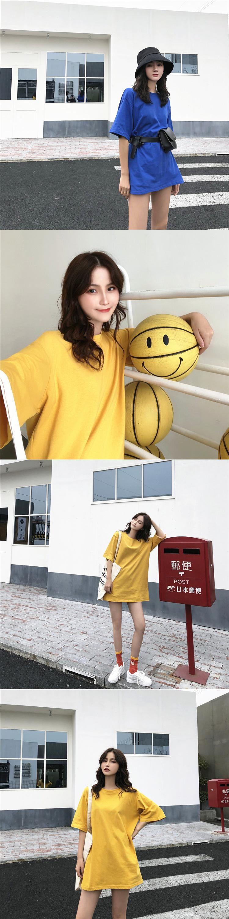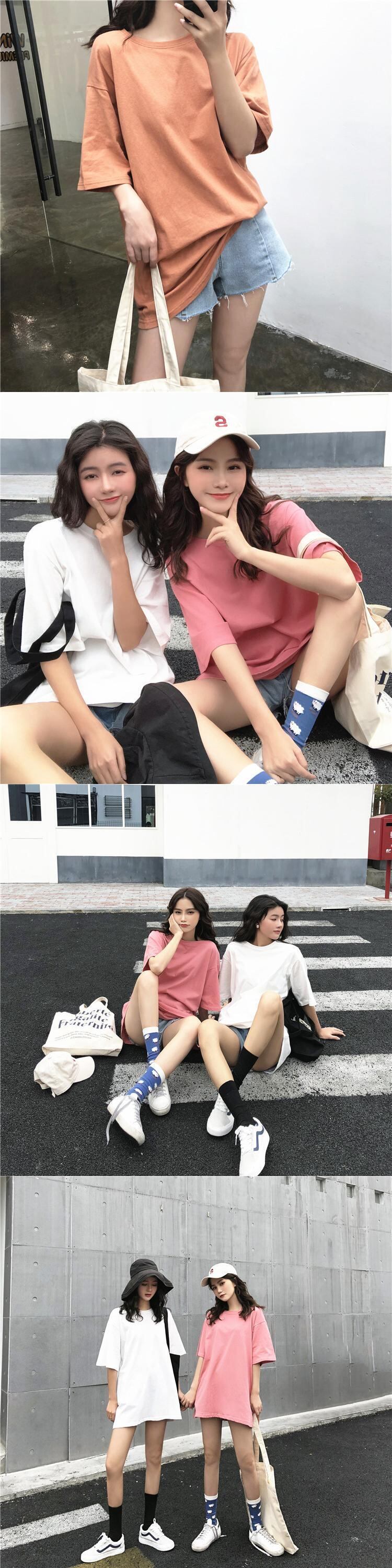 レッドラウンドネックソリッド カラーシャツ トップス スプリングルーズTシャツ 春物 Oネック ソリッドカラー kumikum14423546292