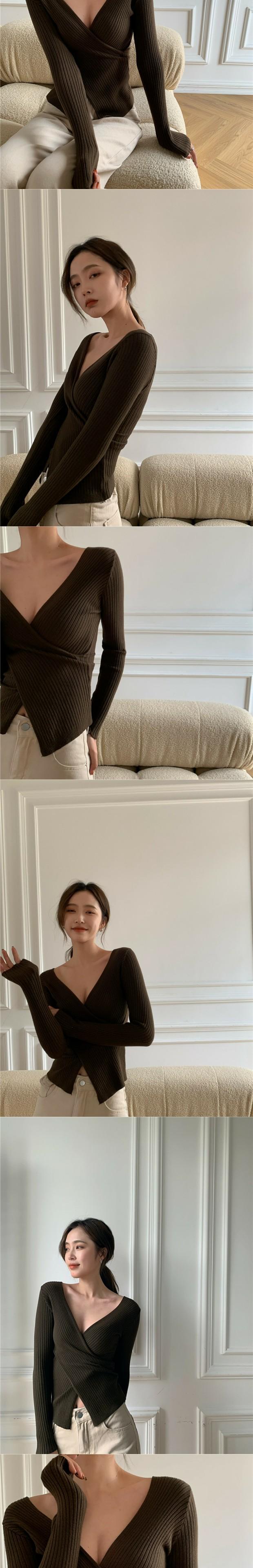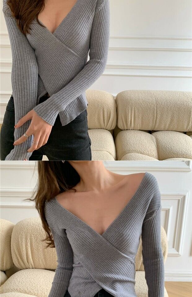 Vネックニットセーター ブラウス レディーススタイルスプリングプルオーバー ロング 春物 kumikum69041126282