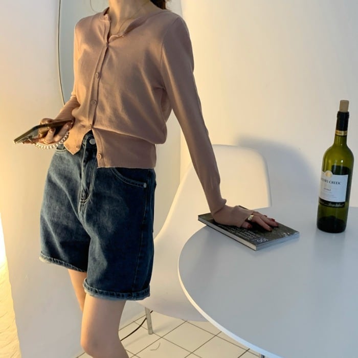 スプリングスリム薄手ニットセーター トップス ショートコート ロング ピンク 春物 kumikum97314874508