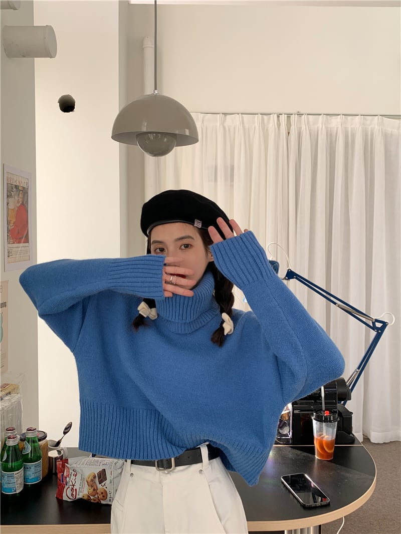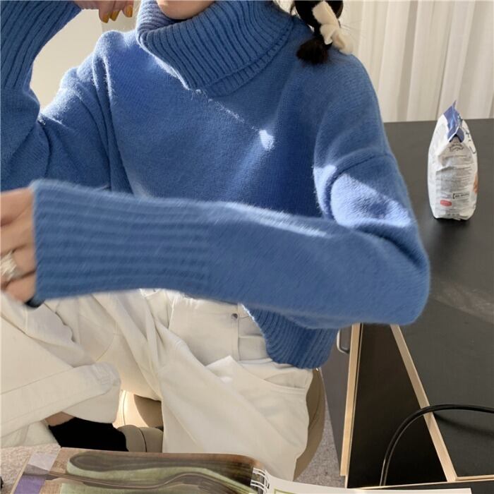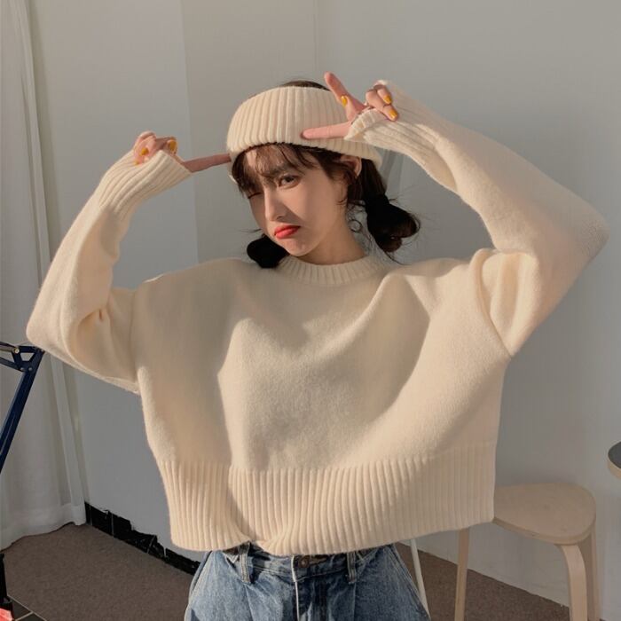 ルーズスタイルショートセーター ウィンターカラーニットトップス 冬物 ピュア kumikum25771880586