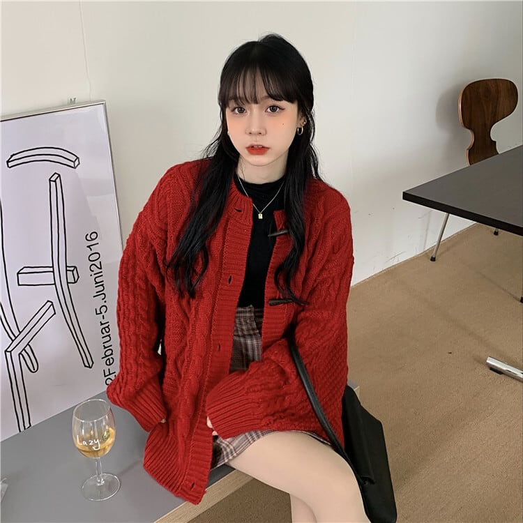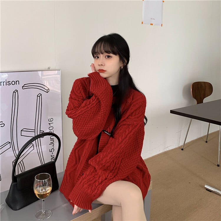 レッドセーター ジャケット スプリングルーズニットカーディガントップス 春物 kumikum40393837672