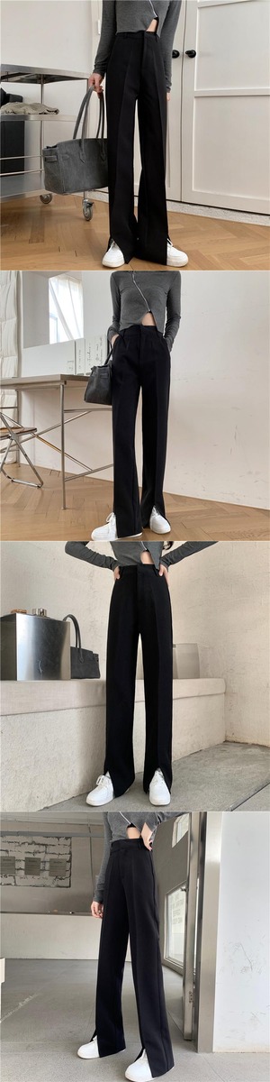 スリットスプリングルーズハイウェストカジュアルパンツ ロング 春物 kumikum31532058335