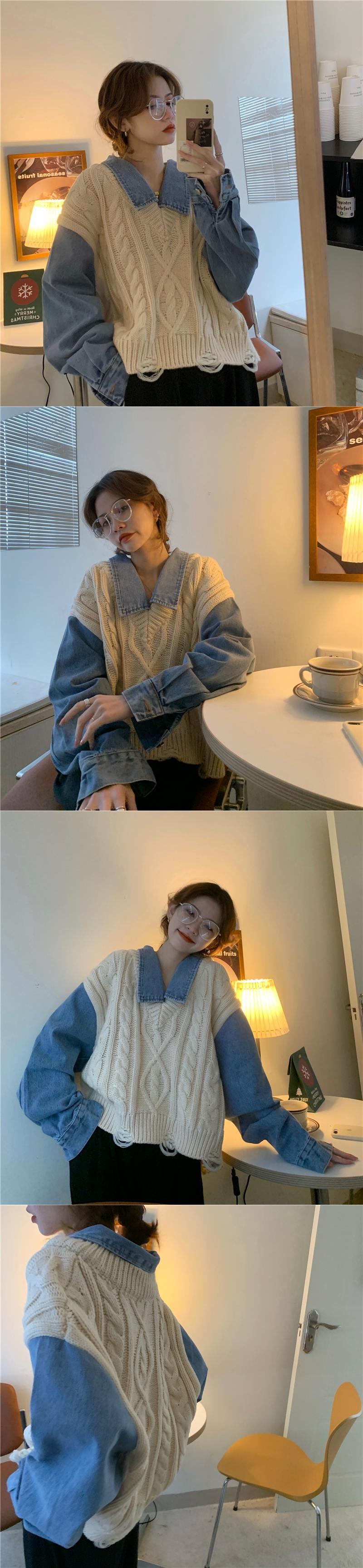 セーター スプリングルーズニットトップス 春物 ステッチ kumikum15343273066