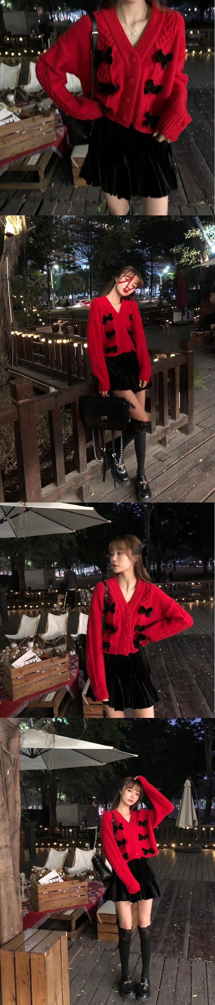 カーディガンセーター レディーススプリングルーズニットトップス リボン 春物 kumikum29034946600