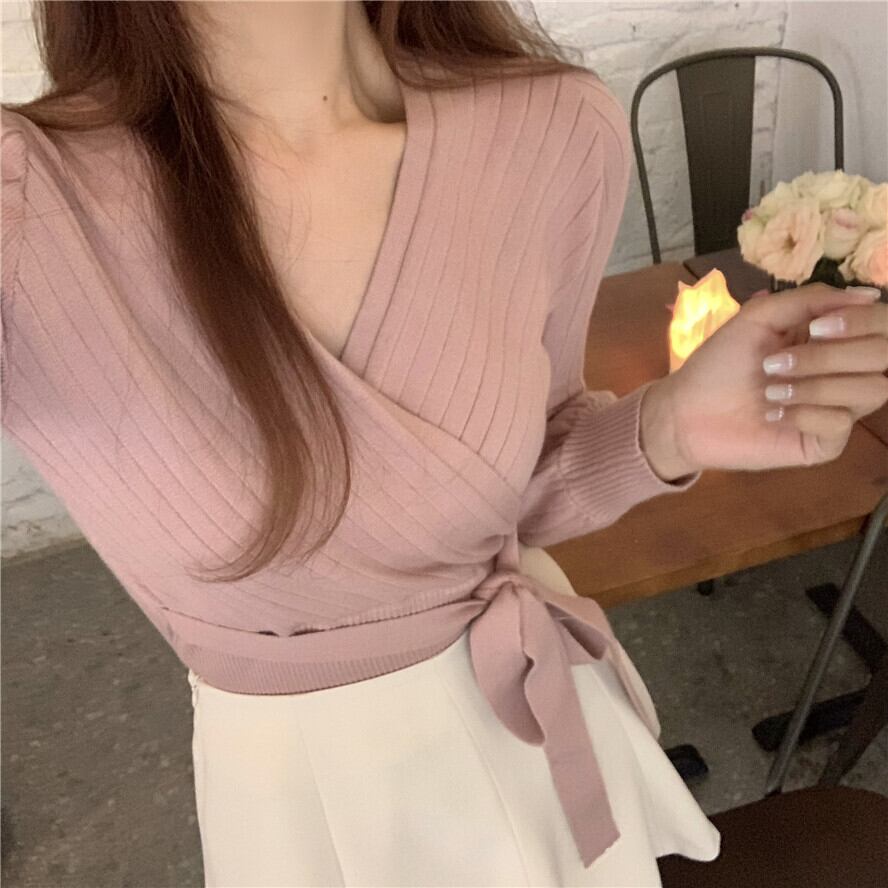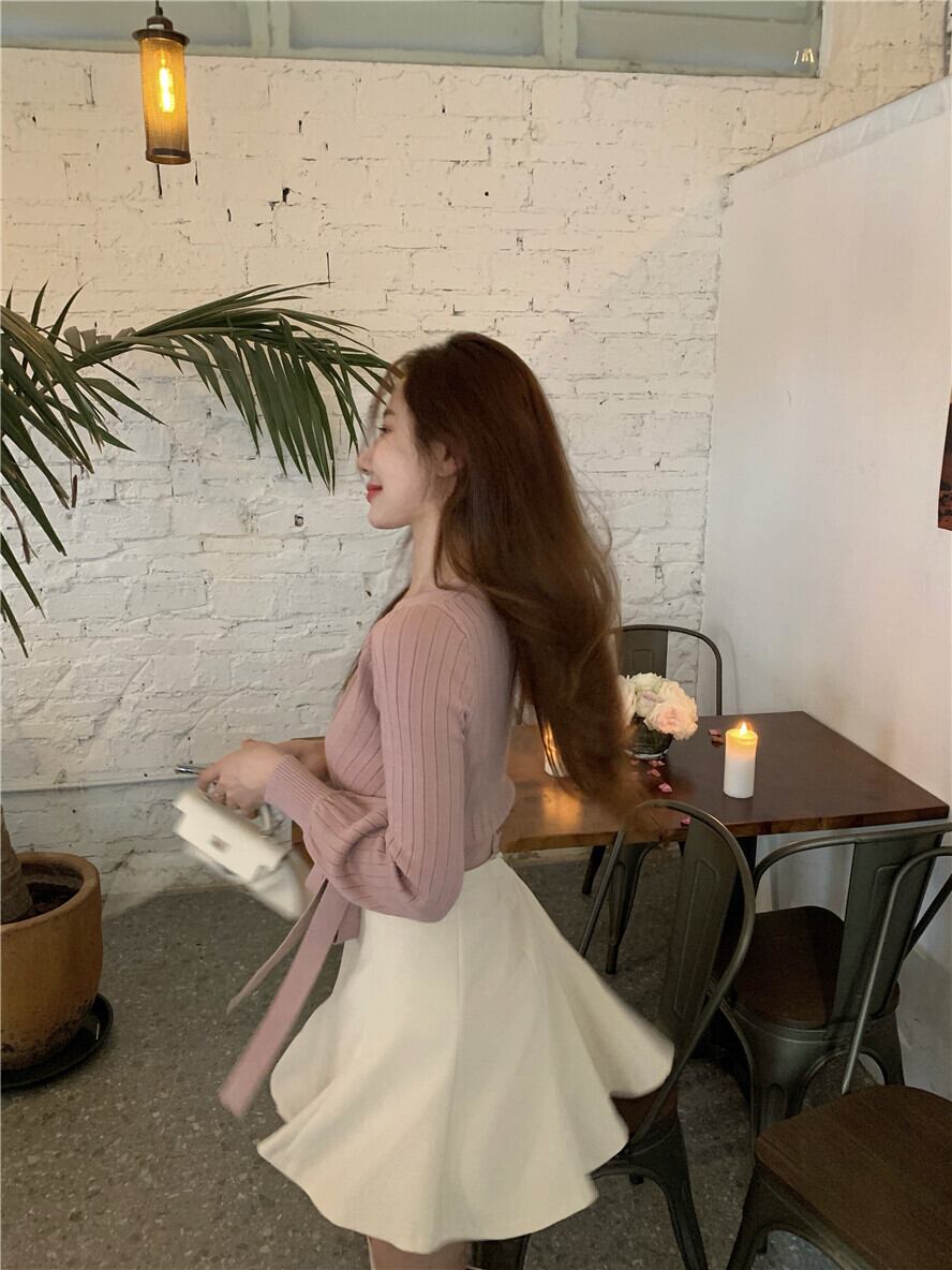 スプリングスカート Vネックニットセーター ハイウェストAラインショート 春物 kumikum11602311823