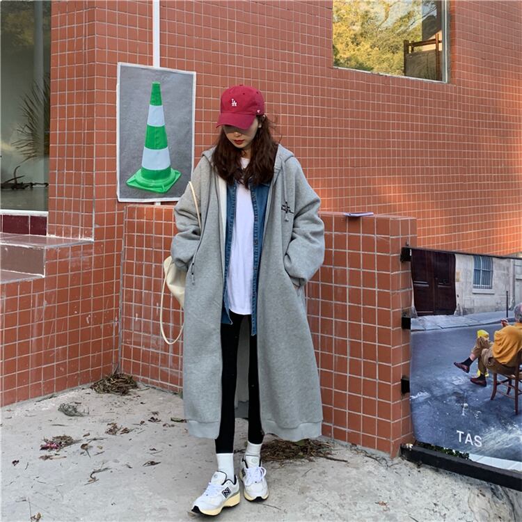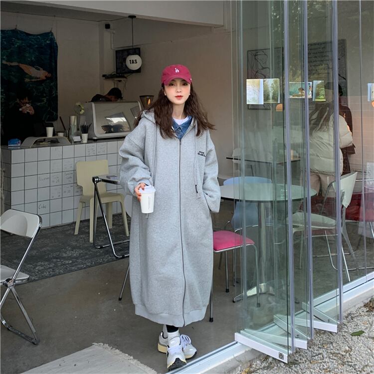 スプリングスタイルルーズカジュアルフードセーター カーディガンベルベットジャケット レディース 春物 kumikum50777100256