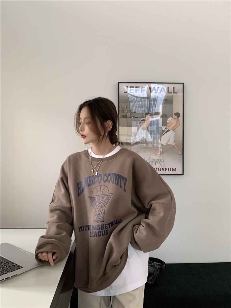 プリントセーター レディースウィンタールーズベルベットラウンドネックプルオーバー ブラウス 冬物 Oネック kumikum72026477503