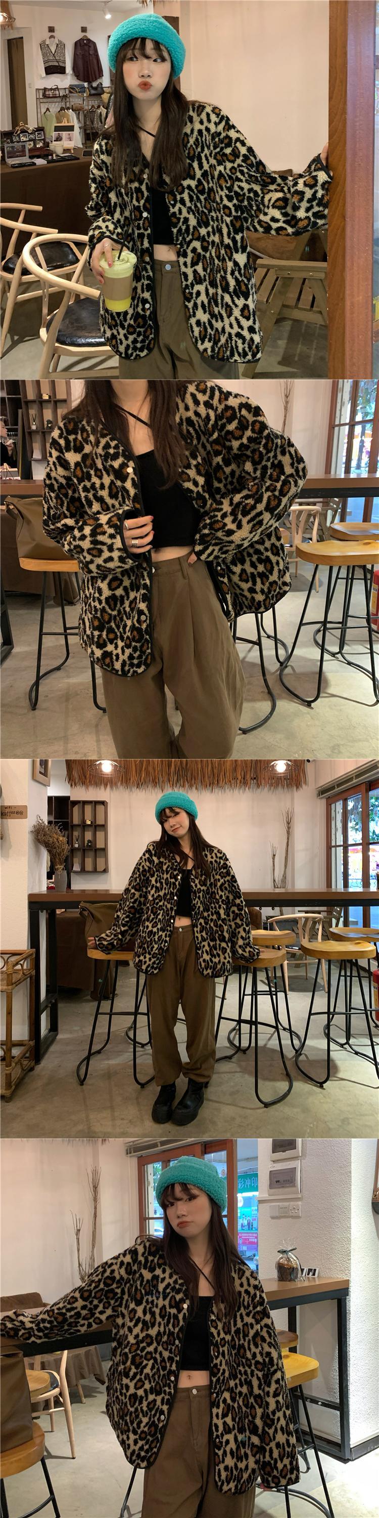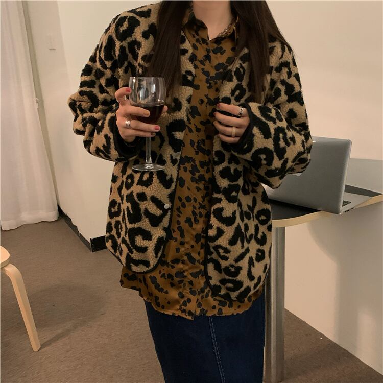 レッドジャケット ウィンターレオパードプリント柄ベルベットルーズ ストリート 冬物 kumikum34197771150