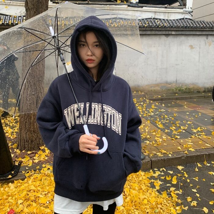 スタンダードブラウス スプリングフードルーズプリントカジュアルベルベットセーター レトロ 春物 kumikum62336379798