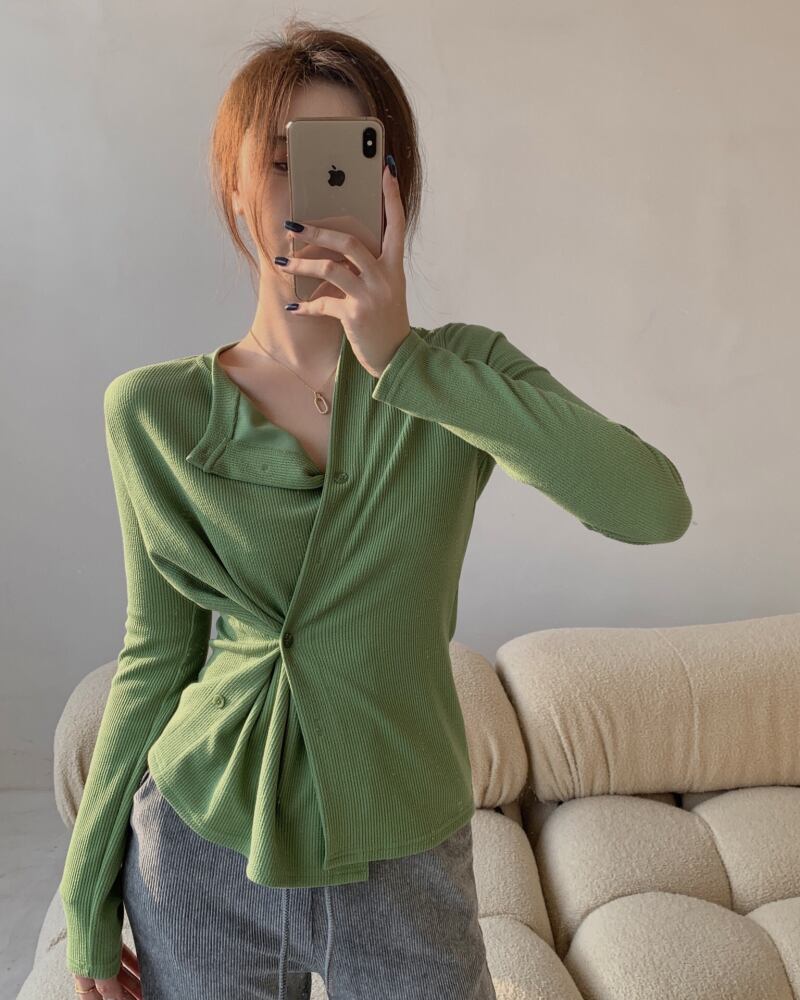 スリムシャツ スプリングロングニットカーディガントップス レッド 長袖 春物 kumikum34149184645
