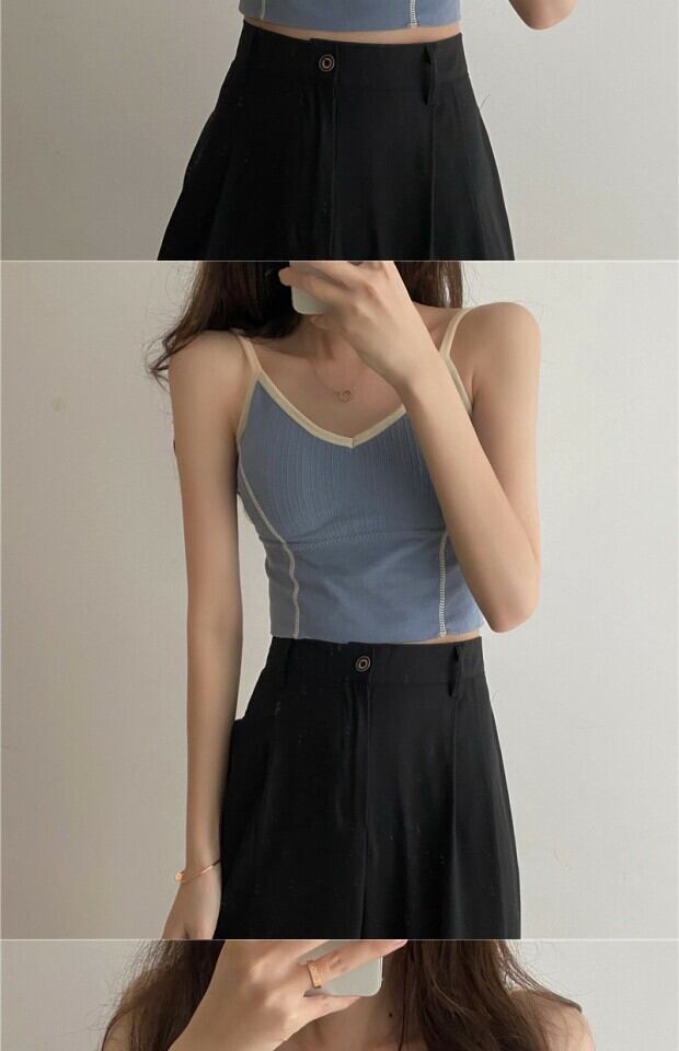 スプリングリング バックストレッチスリムVネックトップス エラスティック 伸縮 春物 指輪 kumikum8604385161