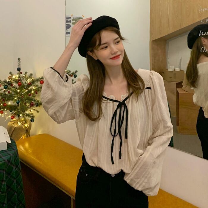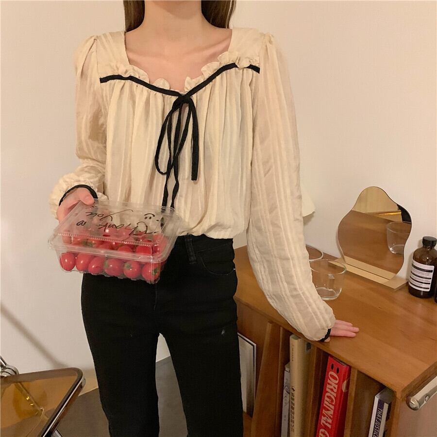 スプリングシフォンブラウス ルーズシャツ ロング 春物 kumikum76476940671