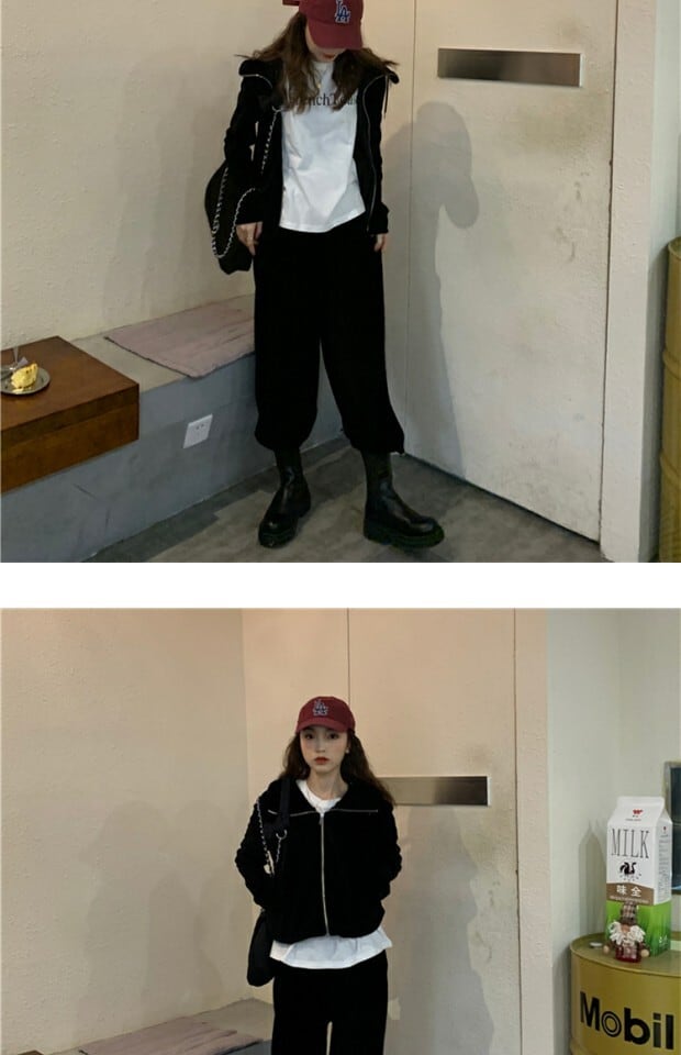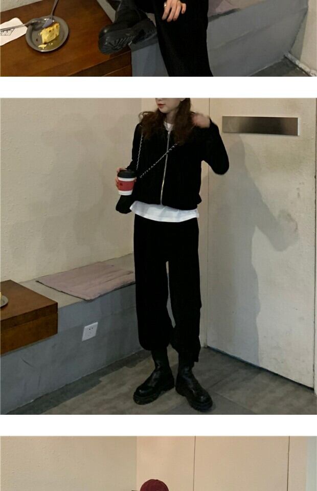 グレースプリングフードカーディガントップス ルーズカジュアルパンツ ロング 春物 kumikum45696481117