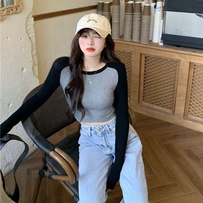 ショートカラーシャツ Tシャツ スプリングスリムトップス ロング 春物 kumikum47226434445