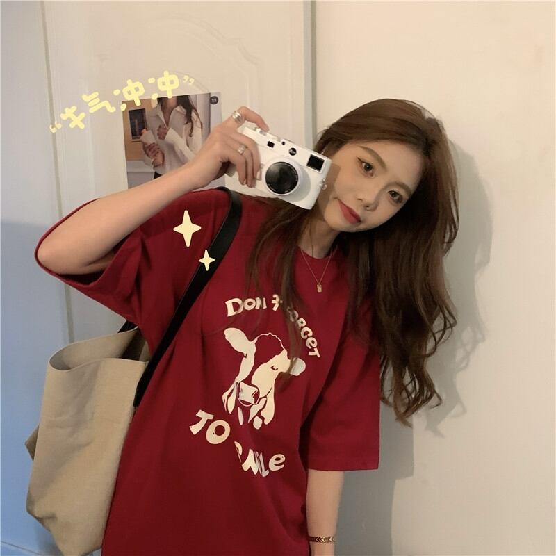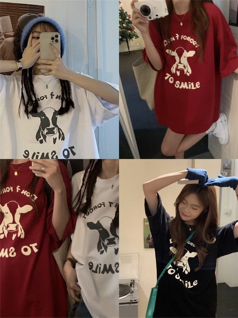 スプリングスタンダードルーズプリントTシャツ シャツ カジュアル レトロ 春物 kumikum99819420295