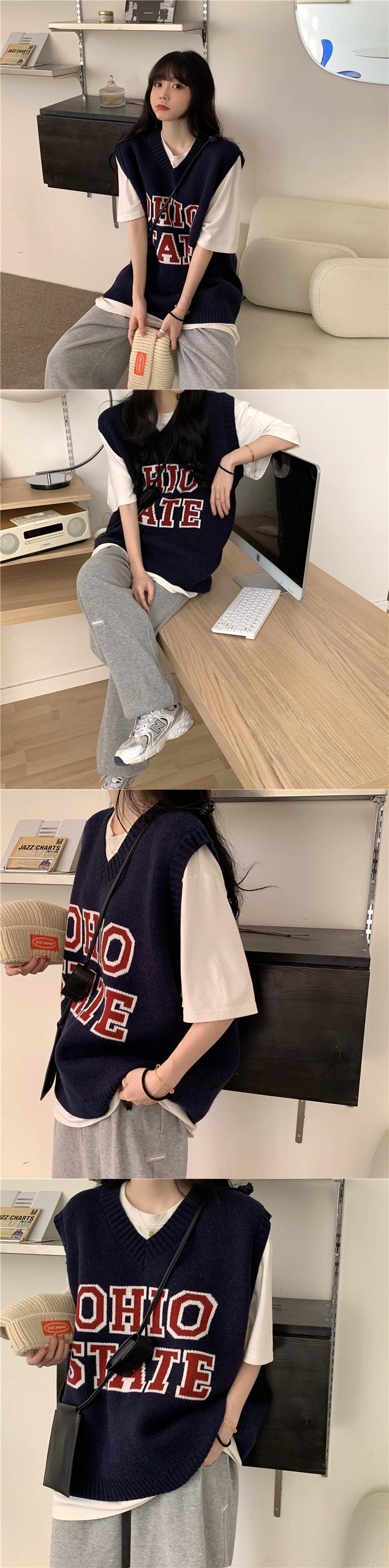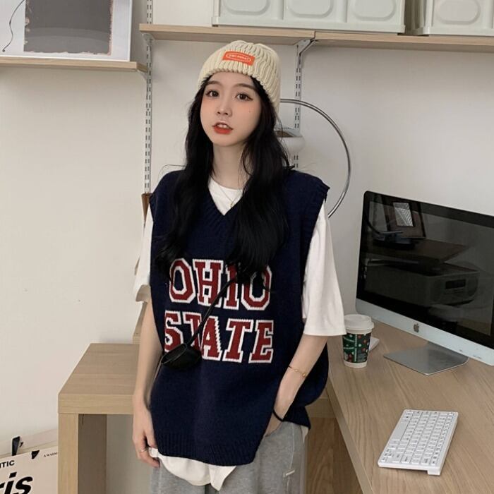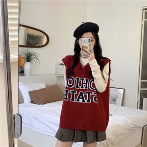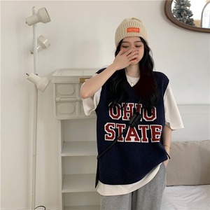 ニットレディーススプリングVネックルーズプルオーバー ノースリーブセーター 春物 kumikum80331360076