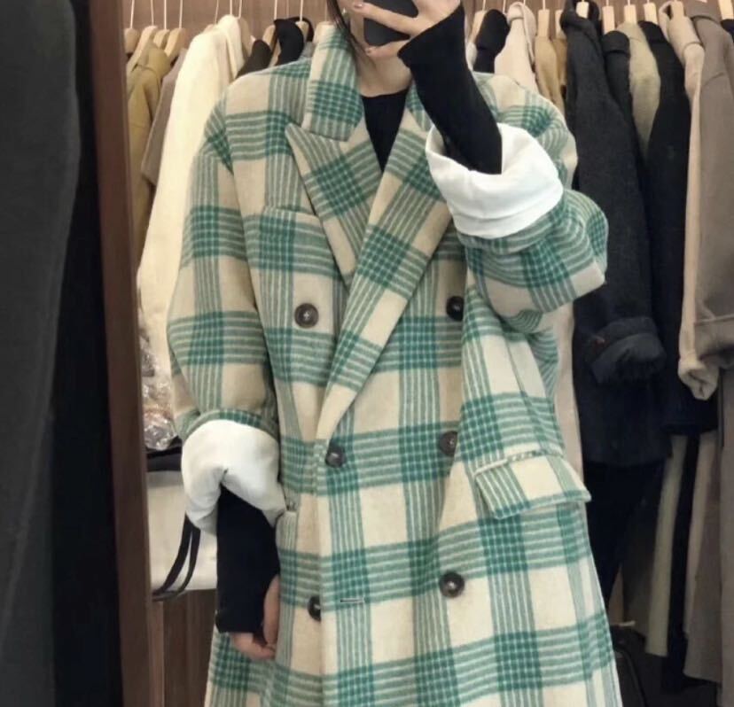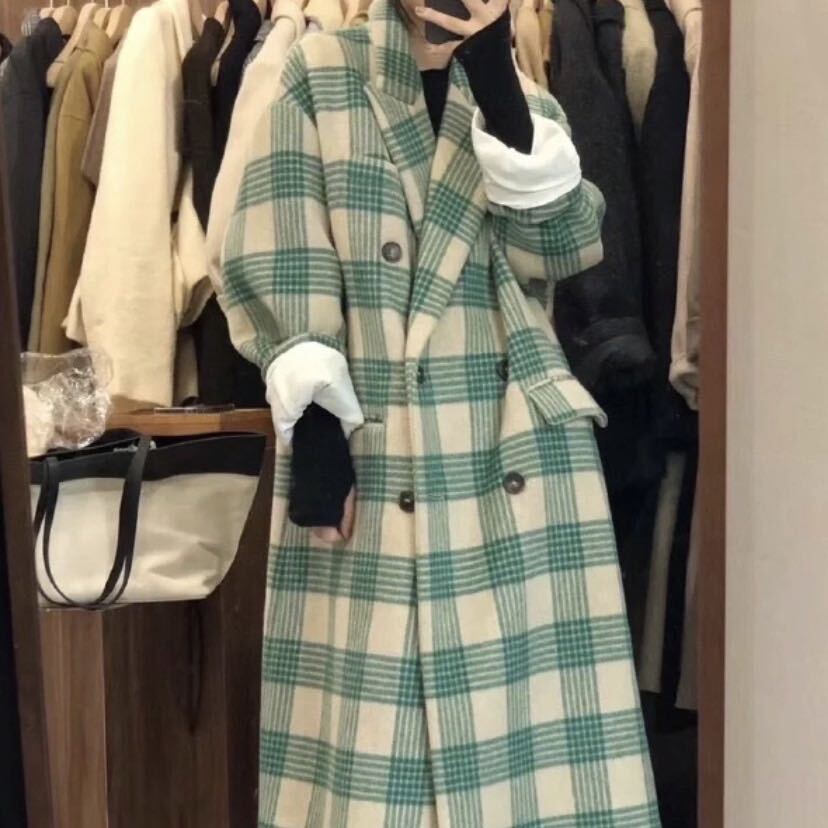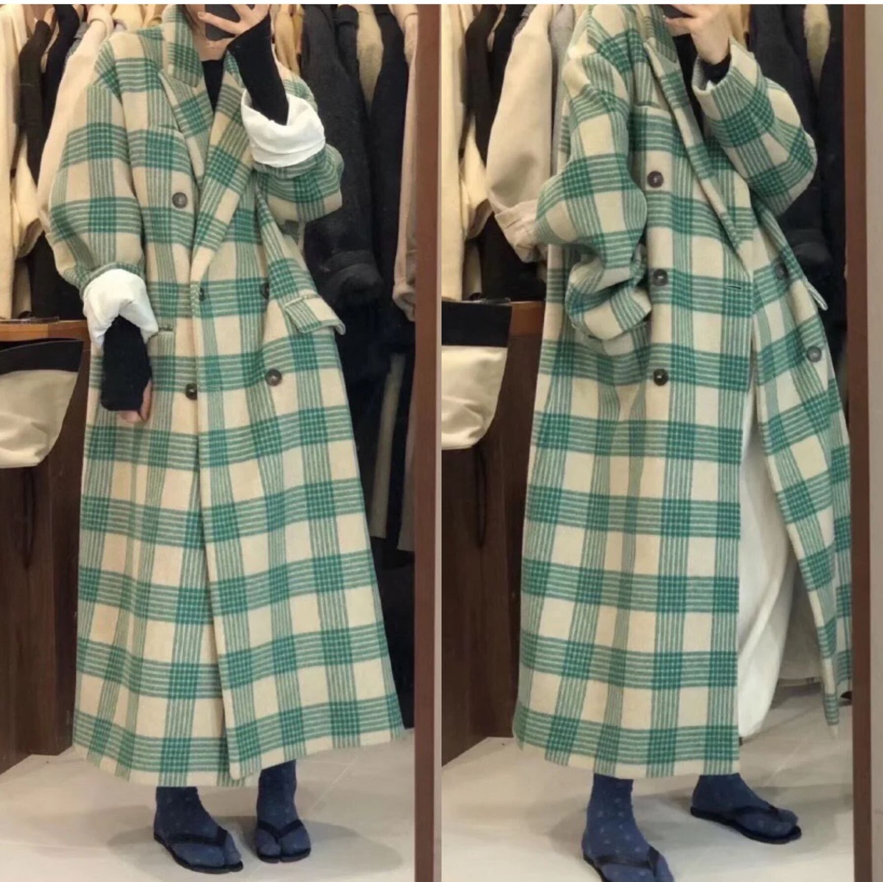 コート レディースウィンタースタンダード格子柄カジュアルルーズロング レトロ 冬物 kumikum27572963848