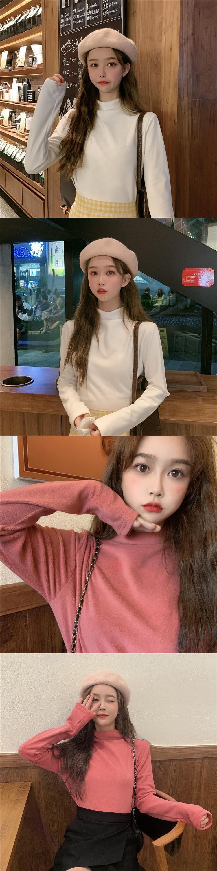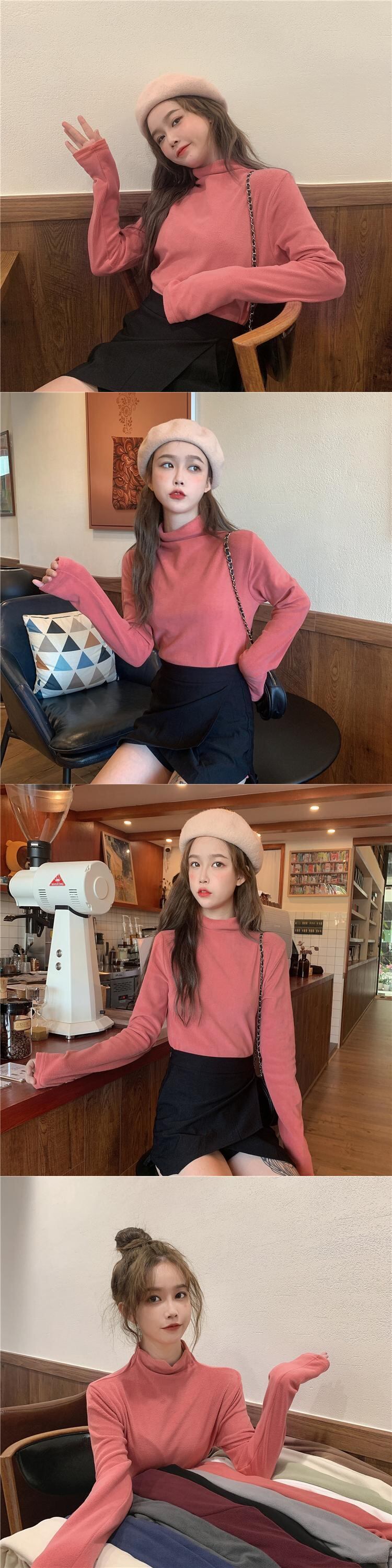 ベルベットTシャツ シャツ ウィンターカラースリムトップス ロング 冬物 kumikum22410844441