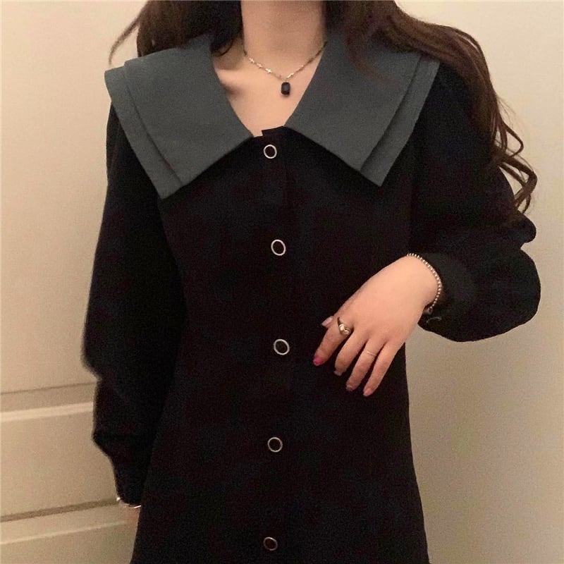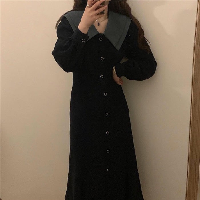 スプリングスタンダードカラードレス 薄手Aラインスカート ロング レトロ 春物 ステッチ kumikum30575579901