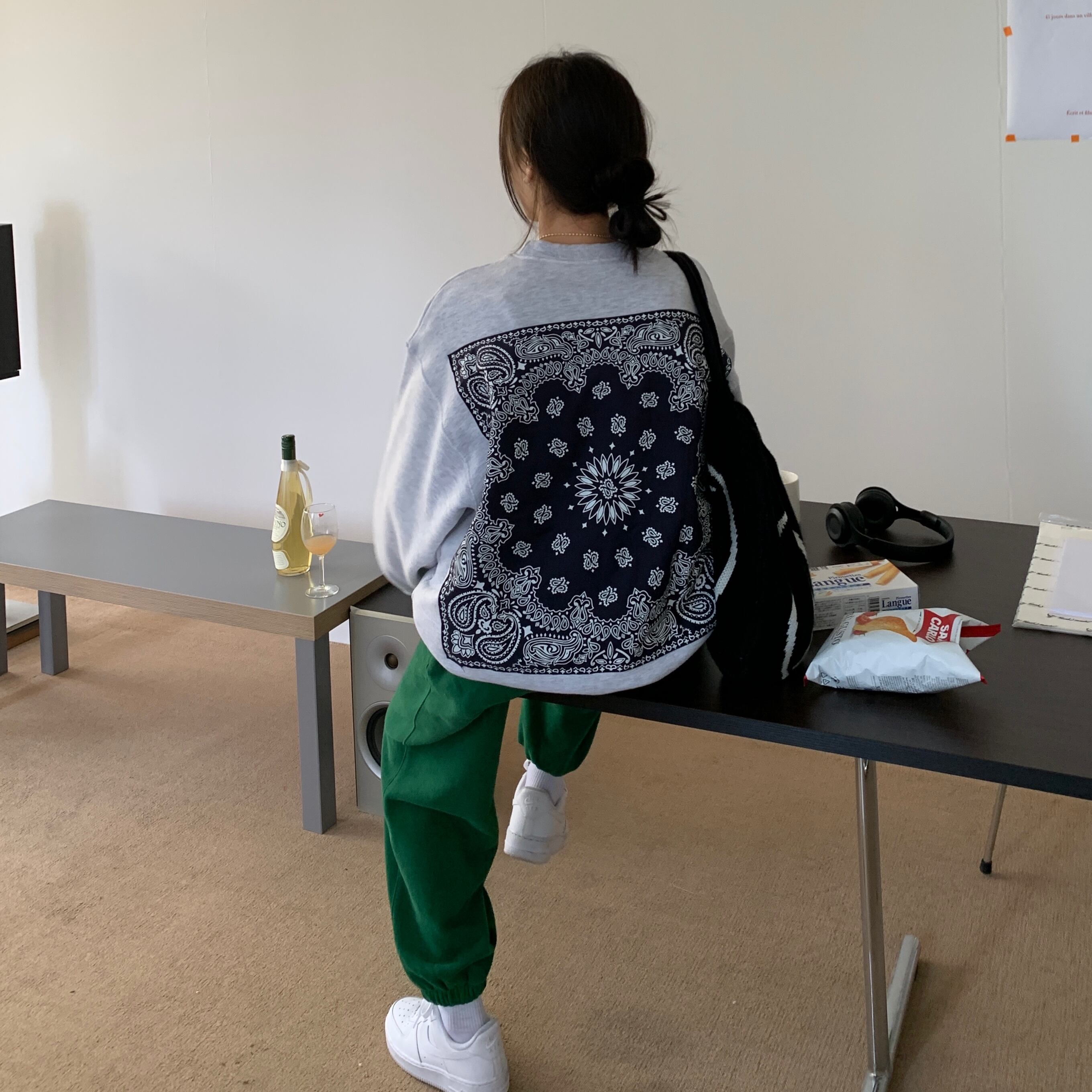 セーター レディーススプリングバックプリントルーズラウンドネックシャツ 春物 Oネック kumikum29974649683