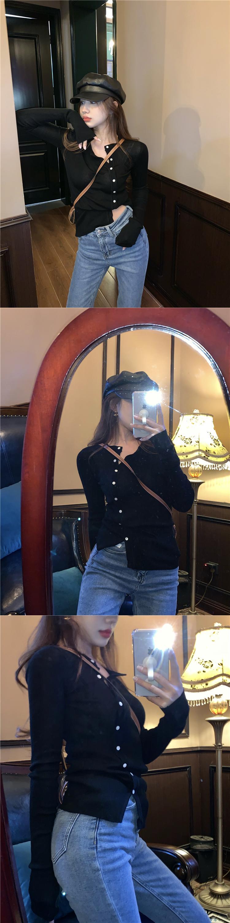カラースリムニットセーター カーディガントップス レディーススプリング ロング 春物 kumikum55463345599