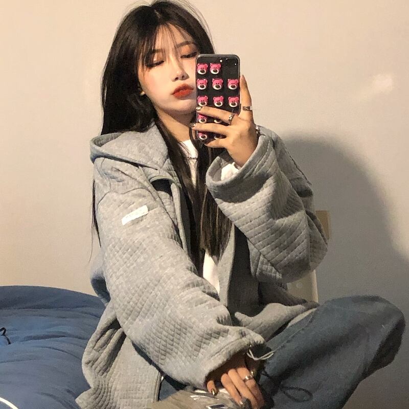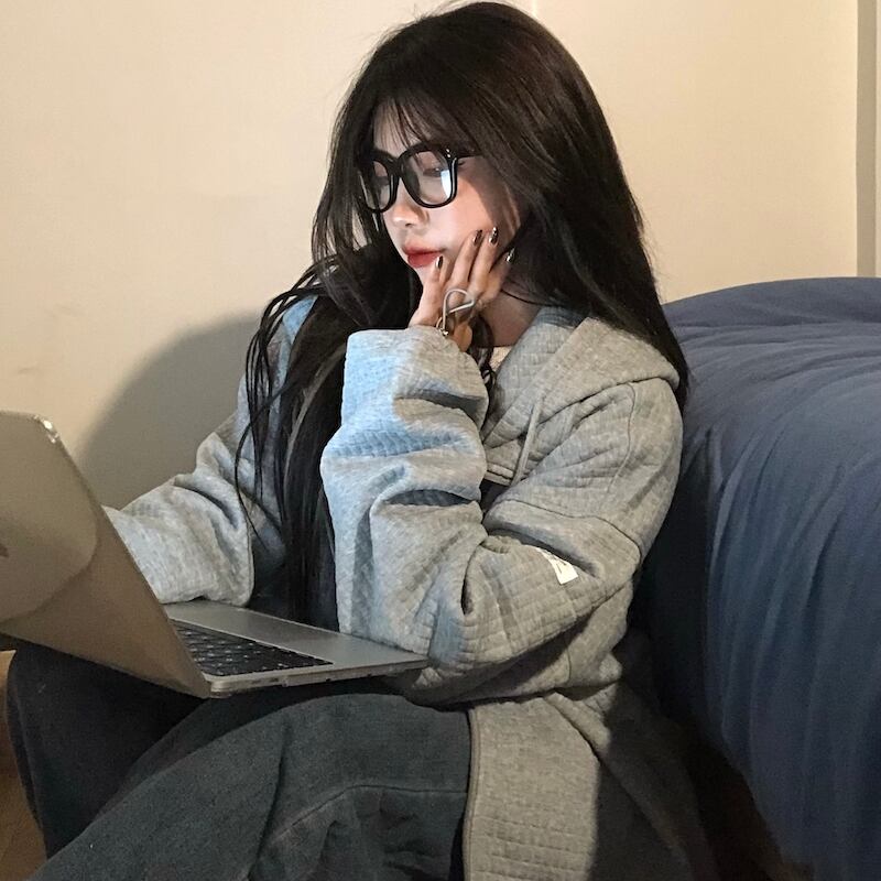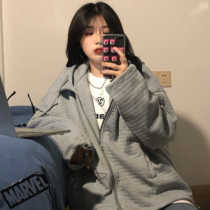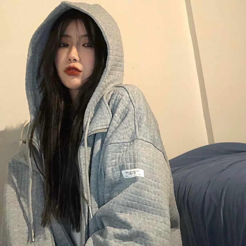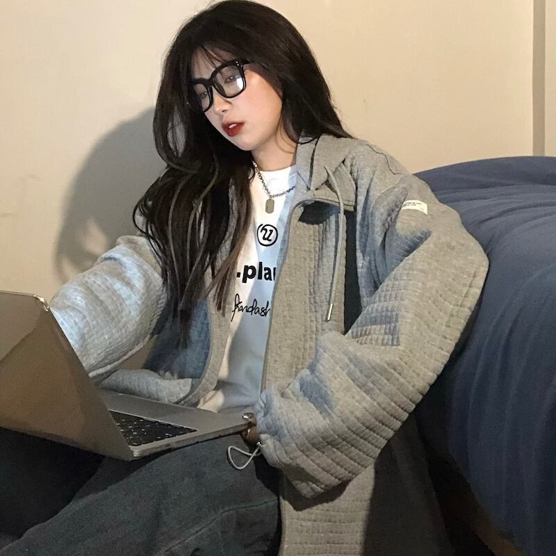 ルーズカジュアルジッパーフードジャケット レディースウィンタースタイルカーディガンセーター ロング 冬物 kumikum58629266601