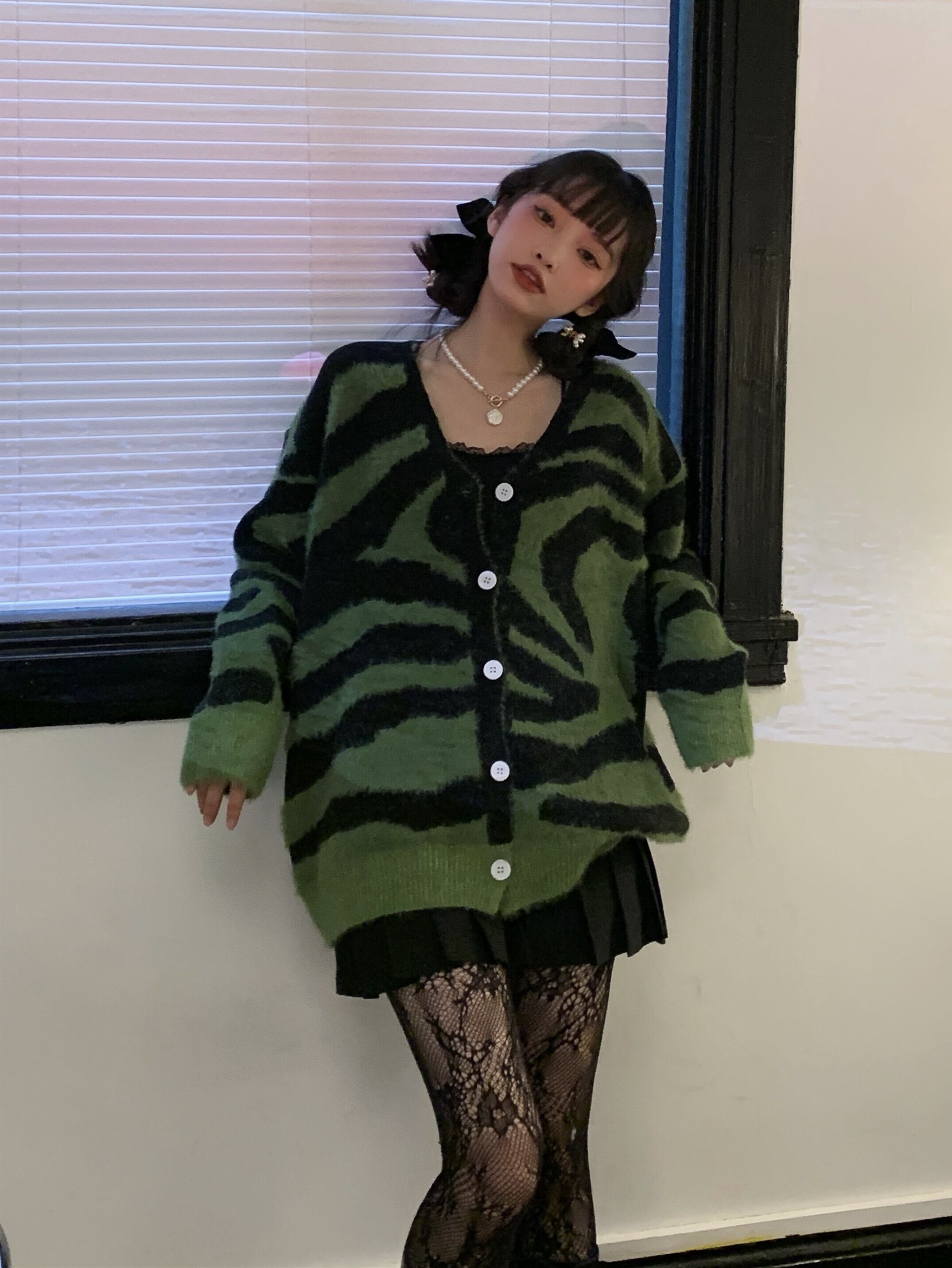 スタンダードプリント柄カーディガンジャケット スプリングスタイルルーズニットセーター レディース ロング レトロ 春物 kumikum47089397758