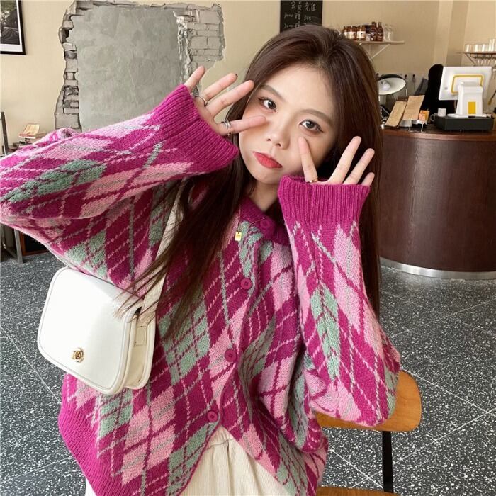 セーター カーディガンジャケット レディースウィンタースタンダードルーズラウンドネック レトロ 冬物 Oネック kumikum55448088032