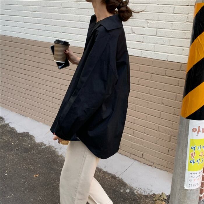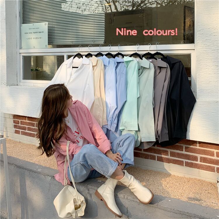 スプリングカジュアルルーズシャツ ジャケット レディースソリッド カラー ロング 春物 ソリッドカラー kumikum42562639988