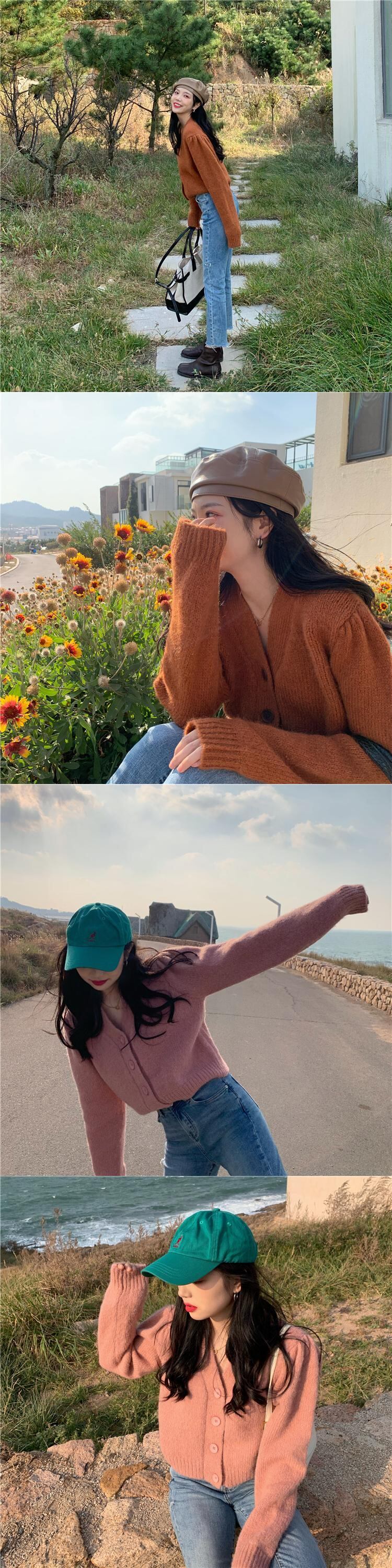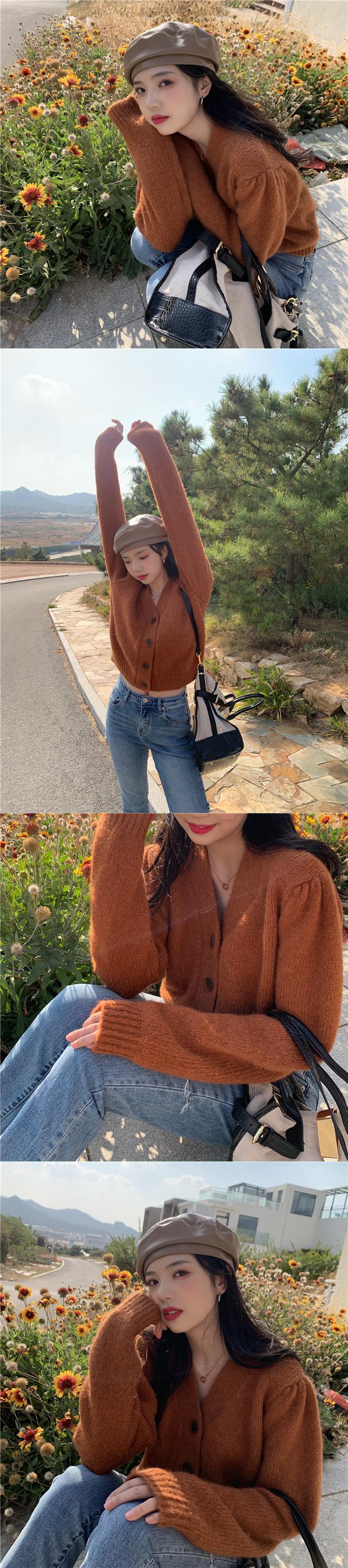 ソリッド カラーショートVネックカーディガンセーター ジャケット スプリングルーズトップス ロング 春物 ソリッドカラー kumikum93298487218